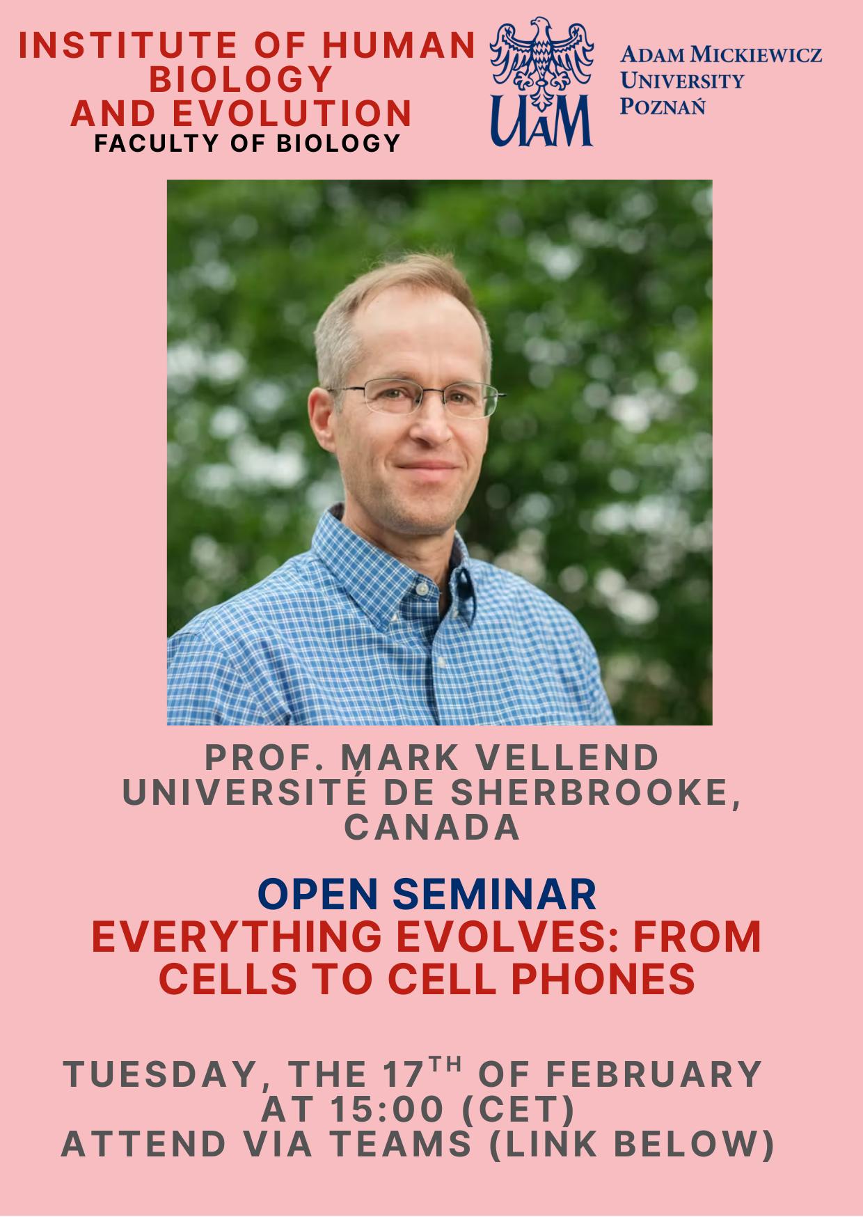 Zapraszamy na Otwarte Seminarium Instytutu Biologii i Ewolucji Człowieka (online) z udziałem Prof. Marka Vellenda.